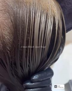 ※ ブリーチを使う際 黒染め履歴のある方は ムラ 色の出方の違いで難しい施術となってきますので お断りさせて頂いております。(要相談)