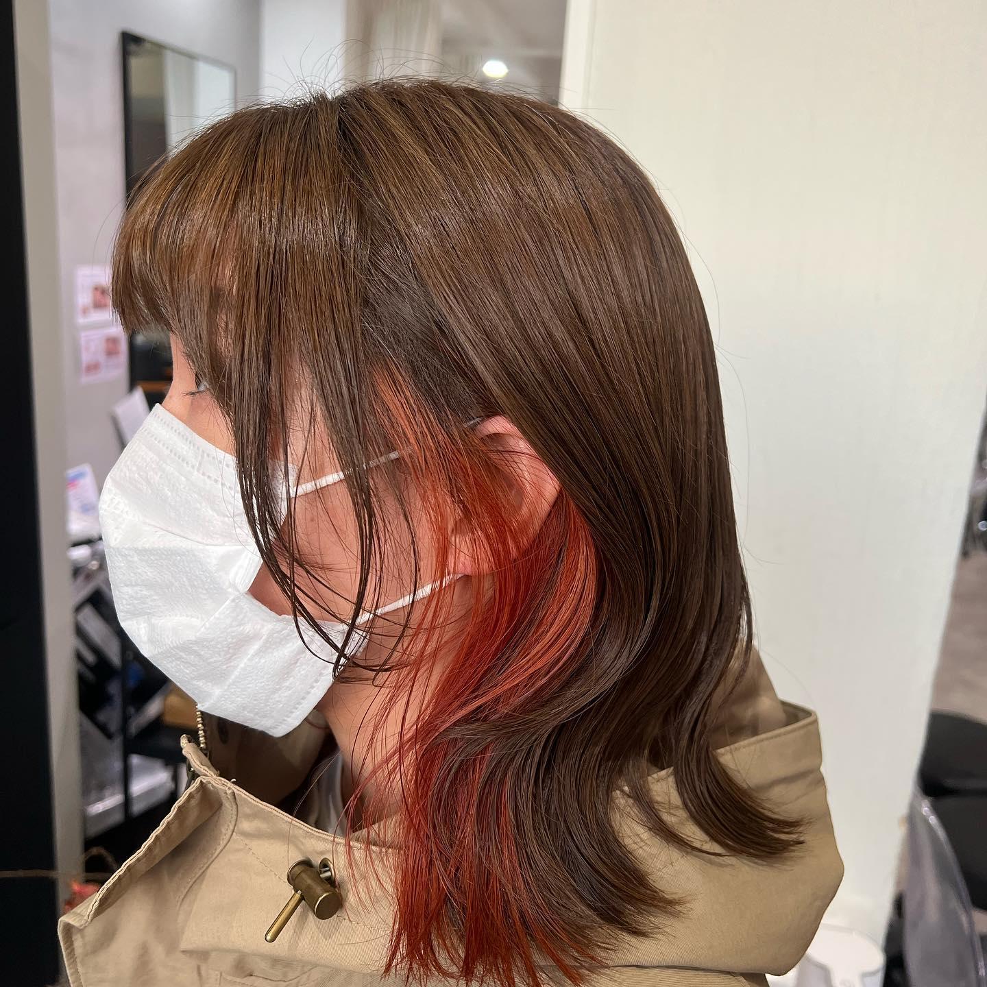 イヤリングカラー/オレンジカラー/レイヤースタイル/ティラベント泉ヶ丘